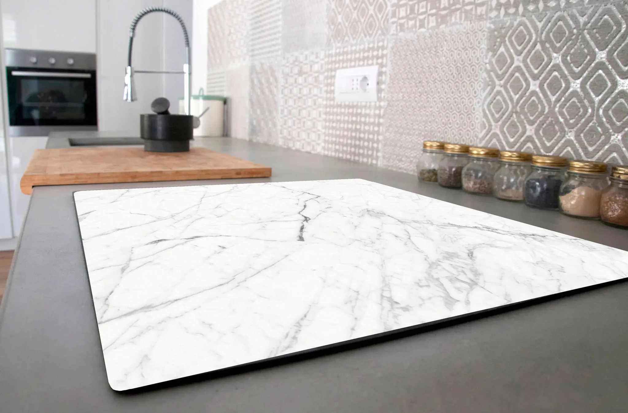 Mit dem Induktionsschutz | weißer Marmor fügen Sie Ihrer Küche einen Hauch von Luxus hinzu, ohne auf Nachhaltigkeit zu verzichten. Das stilvolle Design sorgt dafür, dass Ihre Küche immer in Bestform aussieht, während sie hygienisch bleibt.
